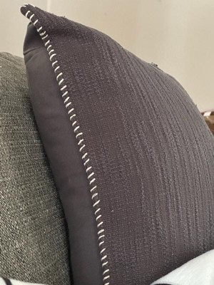 Elevate any interior living space with sophistication and urbane style with this woven accent pillow cover from Rizzy Home. With a light texture in a unique striped pattern solid design, this elegant 22" x 22" pillow cover features a gorgeous whipstitch flange in natural that brings extra finesse to this design element, making it great alone or layered with other textures, colors or styles. In a refined, rich charcoal gray color, this timelessly chic pillow cover will bring added refinement and dimension to any décor.