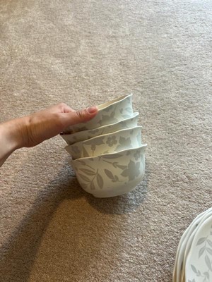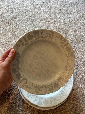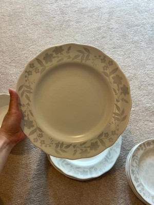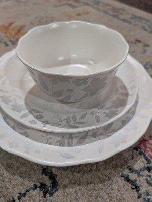 Understated and elegant, the Refreshed Floral White dinnerware set combines a soft scalloped shape with an intricate floral pattern in shimmering silver mica. Made of chip-resistant porcelain that is safe for the microwave and the dishwasher, this dinnerware is both beautiful and functional. All pieces are dishwasher safe for easy clean up!