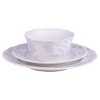 - Includes Dinner Plate, Salad Plate, and Cereal Bowl