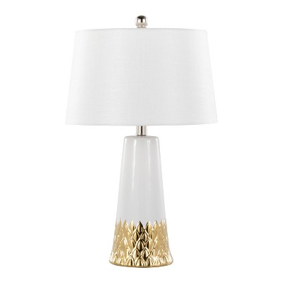 23" Finn Vintage Minimalist Iron LED Mini Table Lamp with USB Charging Port Wood Finished/White Includes LED Light Bulb - JONATHAN Y