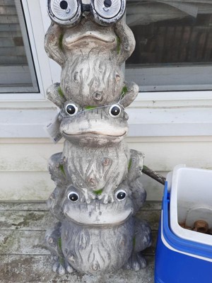 [This review was collected as part of a promotion.] I got this stacked frog family statue for our front porch, to go with other small frog statues we have. This is so cute. I love all the details on it and the fact that is pretty tall, 23 in, so out of all of them, this one stands out. Plus is solar powered which is super cool and at night, what looks like the tiny frog is looking through binoculars, those are lights. Very pretty statue, well made that comes at a great price.
