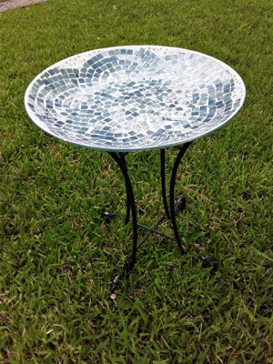 - OUTDOOR STATEMENT PIECE: Modern birdbath statue with hues of blue mosaic glass provides a sanctuary for all types of birds, while adding colorful style to your outdoor living space, backyard, or lawn