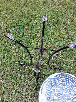 [This review was collected as part of a promotion.] This is a beautiful little birdbath set! Super easy to set up, just open it up, tighten the nuts on the stand, put the bowl on, and good to go! I am going to use U-shaped landscape pins on each leg to give it further stability since it's windy where I live, but that has nothing to do with the quality of the product...just a helpful hint! The mosaic bowl is gorgeous...really well done, and the prettiest mix of soft blues. The base is a nice heavy metal and should hold up well. I'm very happy and it looks great in my yard!