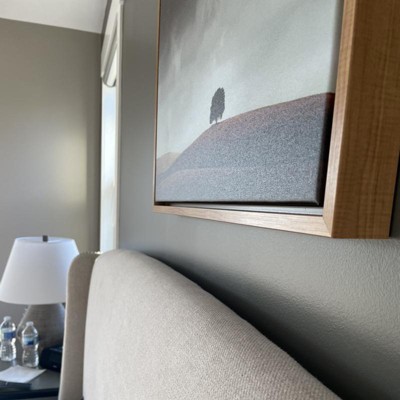 - FRAME DETAILS: The canvas is framed in the Sylvie Maple frame, which is a modern, float frame with natural maple woodgrain coloring and dramatic depth. The frame measures 1 in. wide and stands 2 in. off the wall. The canvas appears as if it is floating in the frame because it has a narrow gap between the edge of the canvas and the frame. The overall size of this framed canvas print measures 23 in. W x 16 in. H.