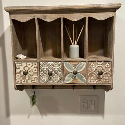23" x 20" Farmhouse Wooden Wall Shelf with Drawers and Hooks - Olivia & May: Antiqued Storage Organizer