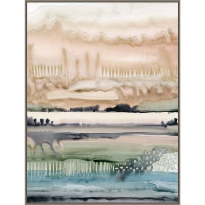 FRAME DETAILS: The canvas is framed in the Sylvie Graywash frame, which is a modern, float frame with Graywash woodgrain coloring and dramatic depth. The frame measures 1 in. wide and stands 2 in. off the wall. The canvas appears as if it is floating in the frame because it has a narrow gap between the edge of the canvas and the frame. The overall size of this framed canvas print measures 23 in. W x 33 in. H.