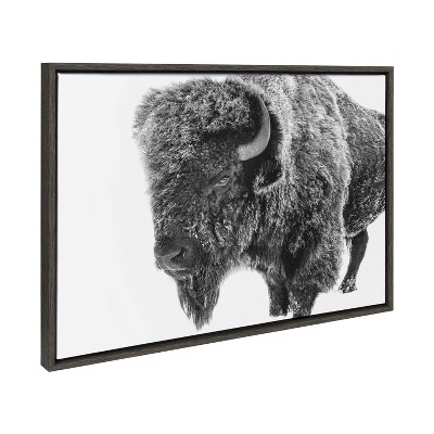 Provide your space with some whimsical appeal with this prairie bison portrait. This lovely, light piece by Amy Peterson Art Studio is perfect for any animal lover. Framed in the USA in Waunakee, Wisconsin, this floating canvas art will be a pleasure to look at every day in your living room, bedroom, nursery, or any room in the home. This art print also makes an excellent gift for birthdays, holidays, or house-warming parties. Printed on gallery-wrapped canvas and framed with a lightweight polystyrene frame, this wall art is easy to display on the wall. The outer dimensions are 23 inches by 33 inches by 1.6 inches. Print Name: “Bison Portrait Black and White”