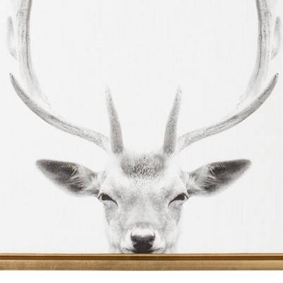 - Decorative black and white deer with antlers portrait printed on framed gallery wrapped canvas