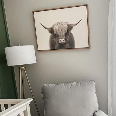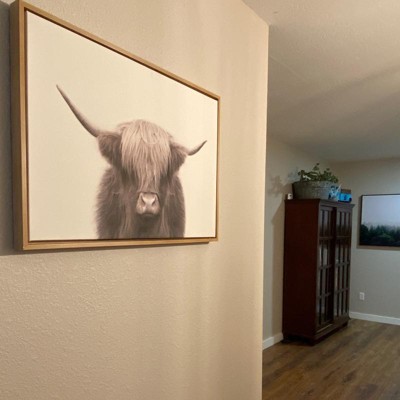 23" x 33" Sylvie Highland Cow Color Framed Canvas by The Creative Bunch Studio Natural - Kate and Laurel