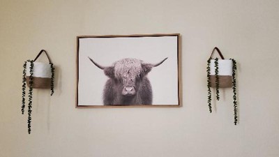 I am obsessed with this cutie cow! Such a beautiful canvas print and it ties my sons new big boy room together perfectly.