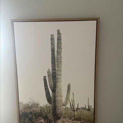 23" x 33" Sylvie Sunrise Cactus Framed Canvas by Amy Peterson Natural - Kate & Laurel All Things Decor