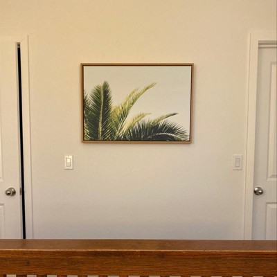 23" x 33" Sylvie Tropical Palm Under Blue Sky Framed Canvas by Amy Peterson Natural - Kate and Laurel