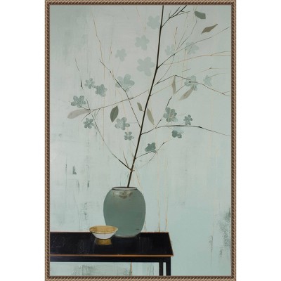 FRAME DETAILS: The canvas is framed in the Sylvie Beaded Bronze frame, which is a vintage float frame featuring a traditionally beaded ornate design with light bronze coloring, subtle antiquing and dramatic depth. The frame measures 1 in. wide and stands 2 in. off the wall. The canvas appears as if it is floating in the frame because it has a narrow gap between the edge of the canvas and the frame. The overall size of this framed canvas print measures 23 in. W x 33 in. H.