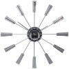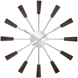 Infinity Instruments Vane Mid-Century Wall Clock will add vintage charm to your home. Spanning just over 23 inches, this mid-century modern inspired clock is surrounded by metal spokes with natural wood accents. The open clock face includes a mirrored center piece and matte silver metal hands. You'll love its striking and unique design no matter where it hangs in your home.