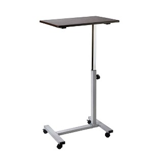23.6" Airlift Overbed Adjustable Height Mobile Side Table Cart Walnut - Seville Classics: Hospital Bedside Laptop Stand
