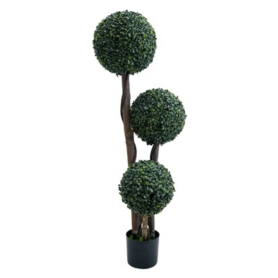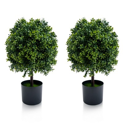 21.6" Artificial Flower Topiary Tree with Ground Spike, 2 Pack Faux Topiary Ball Tree with Flowers, UV Resistant Fake Geraniums Silk Flowers Pink