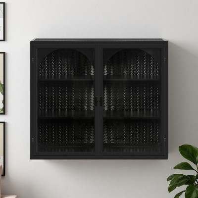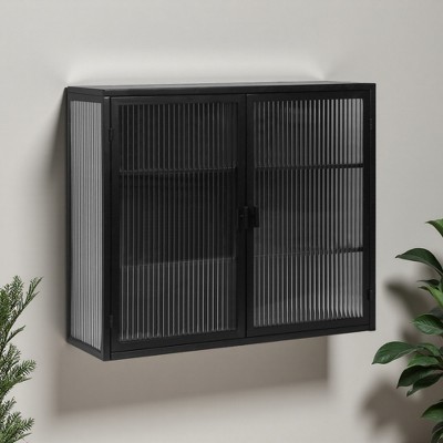 23.62" Iron & Tempered Glass Wall Mounted 2-Door Cabinet with Open Shelf & Towel Rack