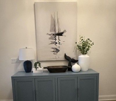 The lamp is perfect in our front entry way table. Great quality and neutral color.
