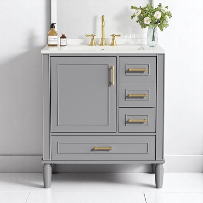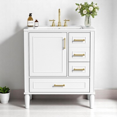 Mshliw 30" Freestanding Bathroom Vanity with Ceramic Sink, Soft Close Door and Drawers, Solid Wood Frame, Modern Storage Cabinet