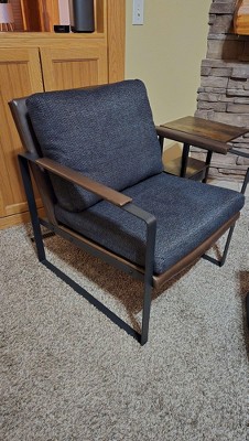 Thank you for considering a Finch branded product. Finch branded products blend styles, materials and deliver practicality. Our products try to be unique, stylish, authentic and always affordable. Our Everett Accent Chair takes inspiration from modern mid-century designs and is made with mixed materials to deliver a stylish and architectural statement in your living space. The industrial silhouette is upholstered in a rich, brown faux leather that contrasts a powder coated square metal frame with a matte black finish for a bold juxtaposition of textures. A tailored pillow back and seat cushion come with removable covers made from a durable polyester mix fabric with attractive herringbone patterns for easy care and easy clean. Both are filled with a foam and fiber blend for a medium-soft comfort that allows you to maintain your posture without sinking into the seat. The Everett armchair is big on style, but doesn't take up much space, making it versatile to use in the office or living room, but small enough to fit in your bedroom or own a corner in any room as a reading chair. We recommend checking the dimensions of this lounge chair and measuring the space you're planning to put it in for accurate sizing and scale. Make a statement with the Finch Everett Accent Chair. Its striking frame and minimalist design combine for a luxurious look that adds comfort and sophistication to any room. Perfect as a centerpiece or to breathe life into an empty corner.
