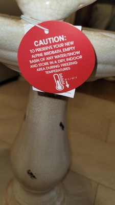 Beckon feathered friends to your yard with the Alpine Corporation Ceramic Bird Bath. Fill the bath with fresh, shallow water and enjoy watching all the birds congregate near your patio, garden, deck, yard, or pool! This high-quality bird bath features a rustic color with an antique finish - great for adding a pop of color to your outdoor decor. It is perfect for pairing with a bird feeder to coax a variety of birds outside your window during any season. The sturdy pedestal keeps the birdbath from tipping over while the ceramic construction withstands weather changes. Your yard will be the delight of humans and winged creatures alike! With a 1-year warranty, you can be confident in the quality of your purchase. Bird bath measures 19"L x 16"W x 24"H for use in yards of any size.