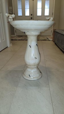 - DURABLE CONSTRUCTION: Ceramic material resists damage from the elements while the sturdy base prevents the bird bath from tipping over