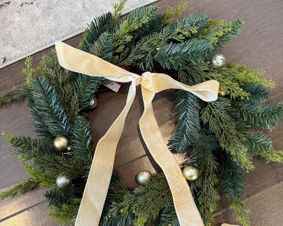 The ribbon color on the wreath looked different from the one on the website, so I replaced it with my own ribbon. I’m happy with the result.