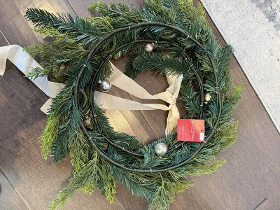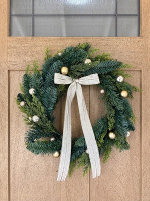 24" Christmas Unlit Champagne Ornament and Bow Wreath - Wondershop™