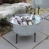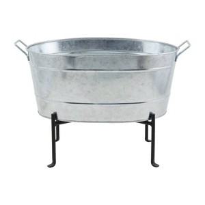24" Classic Oval Galvanized Tub With Folding Stand Steel - ACHLA Designs: Wrought Iron Beverage & Plant Stand