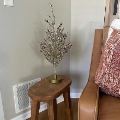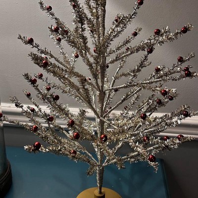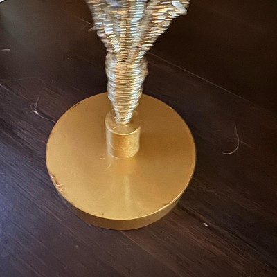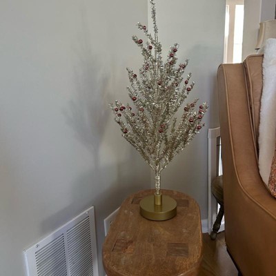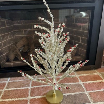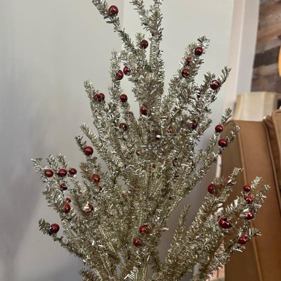 [This review was collected as part of a promotion.] This 24-inch Decorated Gold Tinsel tree is a nice little decorative accent. It’s the perfect size for a tabletop or mantel and is surprisingly sturdy. My favorite feature is that the stems are easy to bend and rearrange, allowing you to customize the shape for a fuller look. The gold tinsel and red ornaments add a cheerful, shimmering holiday touch. Highly recommended!
