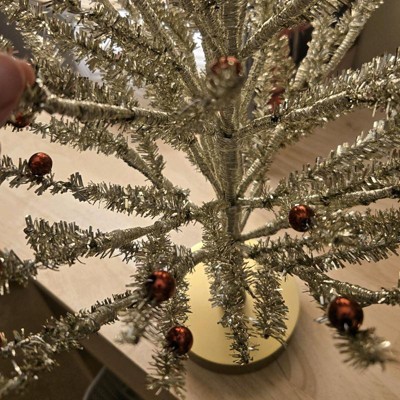 I love this tree so much. It literally draws people to my office when they see the shine of it. It's a great size for a desk or small table. The tinsel does not flake and the branch bases are a metal wire material which makes it very sturdy and hold it's shape. I love the tiny ornaments on the branches and chose to add pearls and bows to further decorate it. I have a dachshund ornament collection for my office that is "weird" so putting it on a "normal" tree just didn't feel right. This tree was perfect because it was just weird enough to add to the vibe and sparse enough to fully display my collection.