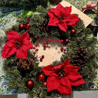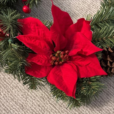 - 24in pine and poinsettia flower Christmas wreath