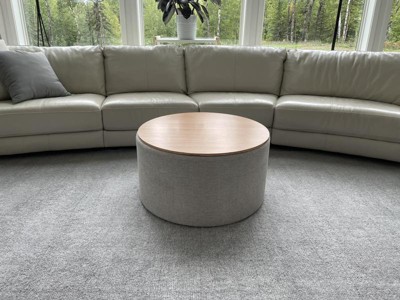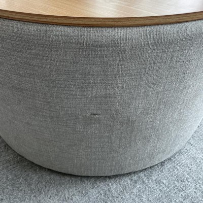 Don’t waste your money. From afar this looks like a really nice ottoman. It’s not. I even ordered a second one in hopes that maybe both would not be damaged but sure enough same terrible quality. The wood tops were both broken and looks like someone tried to super glue it back together. The pressed wood is separating at the seams. A circle top is more like an uneven oval that you have to maneuver to fit the actual ottoman that also has issues. Returned both. BUYER BEWARE!!!!