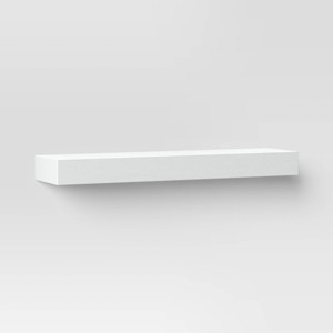 Bring practical and stylish storage to any living space with this Floating Wood Wall Shelf from Threshold™. It features a simple linear shape for a clean modern look. Available in 4 high-quality wood finishes (white, black, natural, walnut) that work with a range of decor styles for optimal versatility. At 6'' deep they're sized to easily hold items like books, plants, and medium sized objects. Do not overload, follow weight and installation instructions provided.Threshold™: Quality & Design / Casual classics for house and home.