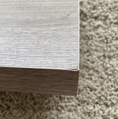 A: The Room Essentials gray appears to be darker with brown undertones compared to the InPlace Gray Wash shelf. We recommend checking your local Target to see if they have the shelf in stock, so you can take a look in person to determine if it meets your expectations.