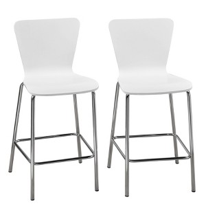 This Hillboro 24" (Set of 2) stools from Buylateral adds an instant update to your kitchen or dining area. Curvy bentwood seats and backs are designed with comfort in mind. Accented with chrome plated legs adding strength and stability with added foot rests for extra comfort. The white and chrome finish will add a modernistic flair to your home interior.