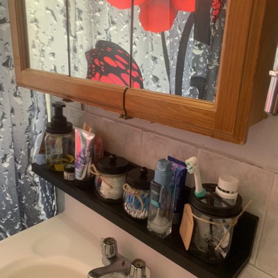 Display favorite family photo frames or canvas art in style with this Black Decorative Picture Ledge Floating Wall Shelf. A sleek edge on the front of this decorative shelf is designed specifically to support picture frames. This handsome black decorative shelf will look great in any room of your home, and easily installs with a simple keyhole method.