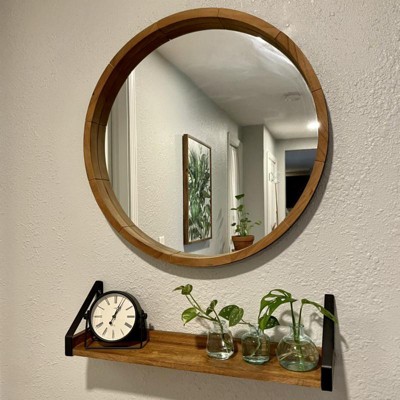 It matches perfectly with the mirror that we wanted to hang it under. There were no reviews when we bought it so I am impressed that it worked out so well! It’s a nice and sturdy shelf.