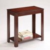 This side end table is stylishly designed to fit in any room. Its classiness and rustic appearance accents your furniture and other wooden tables in the room. The weight capacity of this table is 250 lbs. for both levels. The lower level space is the perfect place for magazines and books storage with the dimension of 22x10.5x3 (from the floor) with 18.5” of space between the lower shelves to the table top. All parts are made from composite wood with an espresso finish. Some assembly required.