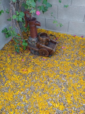 [This review was collected as part of a promotion.] I have been working on my garden and I got this wheelbarrow fountain and it just makes my garden so perfect. This was super easy to set up and it just has wonderful detail that makes you feel the joy of being outdoors. my dog likes to lay next to it and take his naps