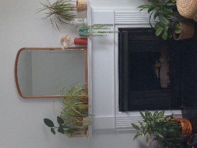 A: Hi Melody - Thank you for reaching out. Proving with panache that function follows form, this Wood Arch Decorative Wall Mirror from Threshold designed with Studio McGee adds sleek flair to your home. We would request you to have a look through the images and reviews uploaded by our other guests on the product description page to have a better understanding. Hope this helps! - Kris