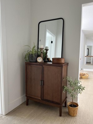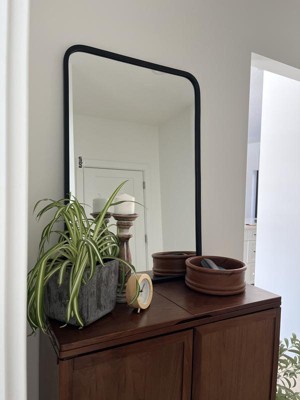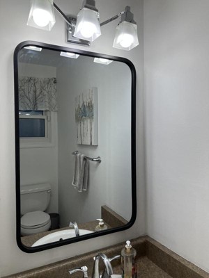 We used this mirror to swap out an old one in our bathroom and it completely transformed the room! It fits perfectly in the space and makes our bathroom feel so much more stylish and modern. It was easy to install and is easy to clean. We bought another one in white!