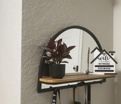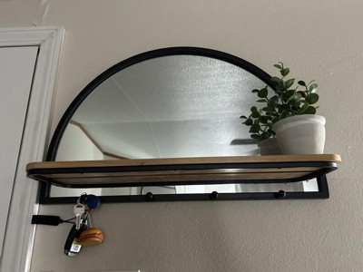 24"x15" Arch Wall Mirror with Shelf and Pegs Brown/Black - Threshold™: Modern Style, Horizontal Orientation, Includes Mounting Hardware