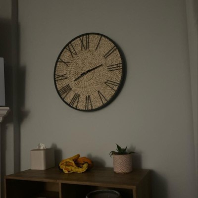- This bohemian wall clock features a warm brown color with black details and a natural dried plant coiled finish, bringing a touch of nature and boho vibes to your décor