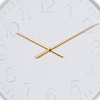 - This contemporary wall clock has gold hands that stand out from a its white surface