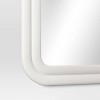Stylish and functional, this Textured Wall Mirror from Threshold™ makes an elegant addition to your home decor. This wall mirror features a textured wooden frame in white, making it simple to integrate into any decor scheme. Easy to mount on a wall, this rectangular mirror is perfect for your entryway, living room, bathroom, or bedroom, allowing you to check your appearance before heading out.