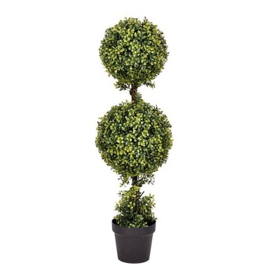 Set of 2 Artificial Boxwood Topiary Trees, Faux Potted Plants for Indoor/Outdoor Decor Want year-round greenery with zero effort? Discover how our artificial boxwood topiary trees look stunningly real—no watering, sunlight, or pruning needed!Looking for the perfect accent for your porch or office? See how these faux topiary trees add a fresh, elegant touch to any space, indoors or outdoors.Searching for a gift that brings lasting beauty? Find out why this set of 2 potted faux plants is the ideal housewarming or holiday present for friends and family! Specification:Dimension: 24 InchMaterial: PE+Wood Packing List:2 x Artificial Topiary Ball Tree1 x Instruction Manual Note:Artificial ball trees usually need to be reshaped by hand after transportation, because some parts of the leaves may be slightly deformed during transportation.Choose the right size according to the size of the place to be placed, ensuring that the plant is in harmony with its surroundings and neither looks crowded nor too small.Confirm the cleaning and maintenance requirements of the plant, although most artificial plants do not require much maintenance, regular cleaning is still necessary to maintain their appearance.