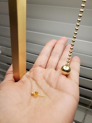 The finish on the metal is a bit bronzier than I wanted, whereas the chain and harp/socket are a truer shiny gold color. The mismatch doesn't look bad, but I wish they matched. The chain switch does look a bit cheap compared to the expensive look of the rest of it. I included a pic with a true gold earring to help gauge the finishes.