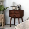 This mid-century wood 2-drawer nightstand is the perfect addition to any bedroom. Constructed with durable rubberwood and MDF materials, this piece is sure to provide years of enjoyment. The two drawers offer plenty of space to store items, while the stylish design and warm wood tones create a cozy, inviting atmosphere. Let this mid-century nightstand bring a touch of modern style to your home.