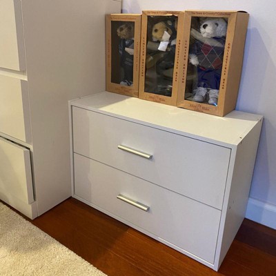 - Includes one 2-drawer shelf, 1 anti tip hardware